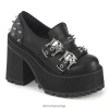 gör en oförglömlig inverkan med våra assault-66 ankelstövlar. Dessa stövlar har en djärv 4 3/4-tums blockklack och en 2 1/4-tums klämd plattform, designade för att vända på huvudet. metallburkedjedetaljerna på vampen lägger till en touch av rebellisk charm till dessa eleganta svarta veganska läderstövlar. med en hel dragkedja i metall framtill är det enkelt att glida in i dessa stövlar. assault-66-stövlarna är perfekta för både vardagsbruk och speciella tillfällen, och är ett måste för dem som älskar att göra ett uttalande med sin edgy stil.