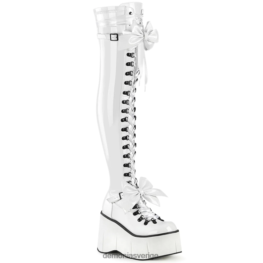4 1/2 tum (114 mm) kilplattform d-ring höga stövlar med snörning på lår med justerbara remmar och avtagbar överdimensionerad rosett vid ankel och lår, full längd med dragkedja på insidan